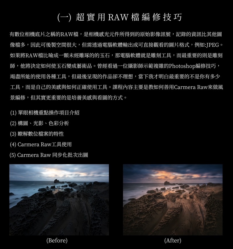 | 高反差場景編修(RAW檔調整 - Photoshop精修) | |