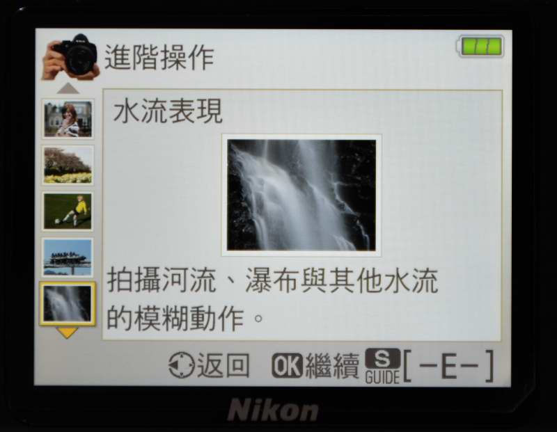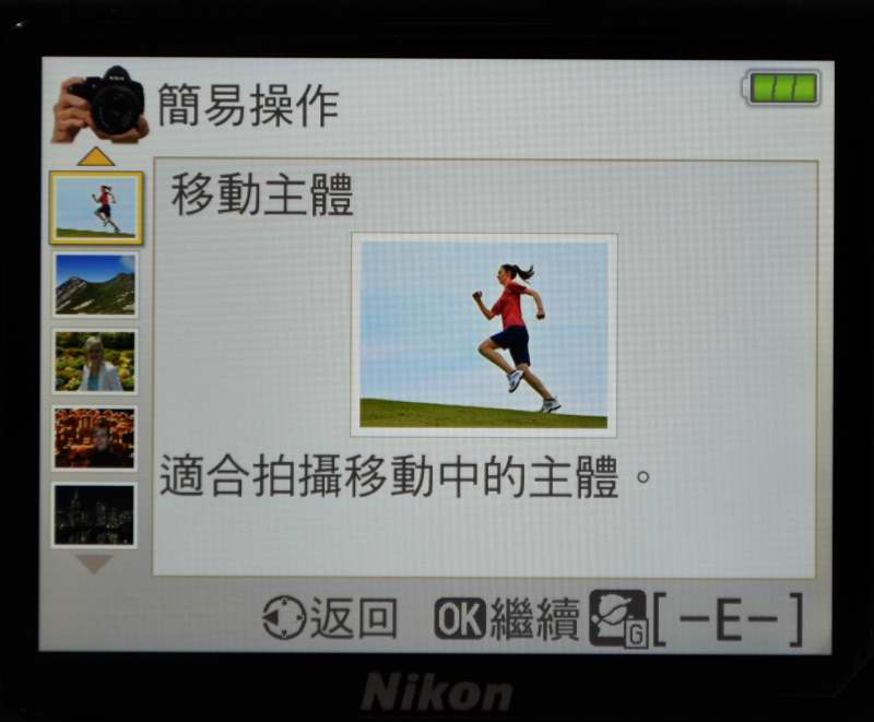 D3400內建Guide引導模式,即使您從來沒有使用過單眼相機,也能輕鬆使用。僅需將轉盤轉到引導模式,跟著畫面上的指示,選擇您要拍攝的場景,便會出現教學功能,輕鬆學會拍照。
